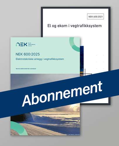 NEK 600:2025 El og ekom i vegtrafikksystem viser hvordan de funksjonelle sikkerhetskravene i Statens vegvesens vegnormal, håndbok N601 Sikkerhetskrav for elektriske anlegg i- og langs offentlig veg, skal løses.
